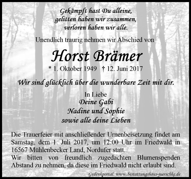 Horst Brämergestorben am 12. Juni 2017